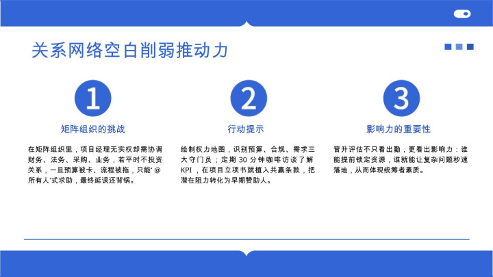 晋升抵制:矩阵式组织里,PM 莫得径直行政权,好多责任需要靠有关东谈主支握。迷惑遴荐陆续者时,敬重的是 “诊治资源、鼓吹复杂问题” 的才能,只会单打独斗的 PM,注定只可停在本质者层面。